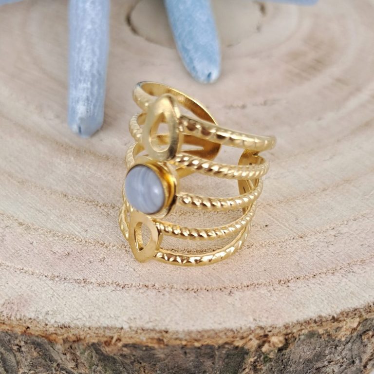 Bague Calcédoine bleue - Acier inoxydable doré 23.00€